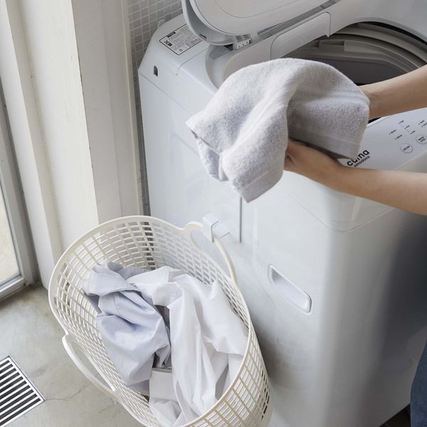 〇ランドリーバスケットを浮かせてスッキリ整頓。