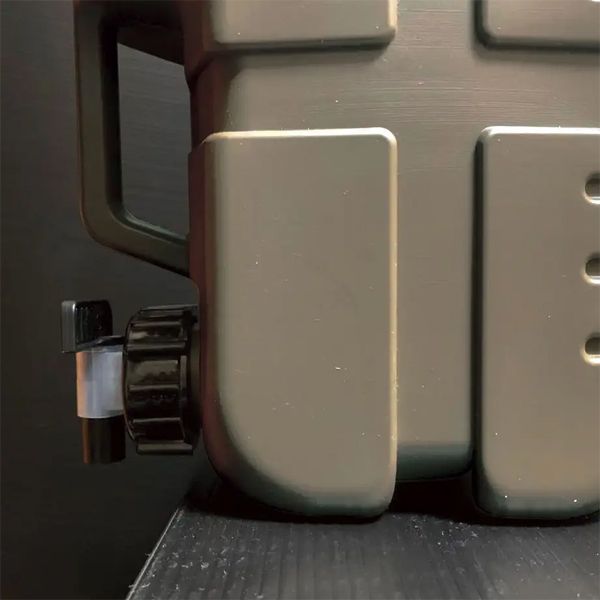 〇蛇口コックを標準装備、立てると僅かに前傾するため、残量が少なくなっても給水可能。また、縦横に入ったベルトスリットを活用すればアイデア次第で使い方も広がるでしょう。