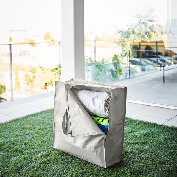〇収納場所に困る家庭用プール、浮き輪、外遊び用のおもちゃをまとめて収納できる!持ち運びにも便利なポリエチレンシートの収納バッグ。