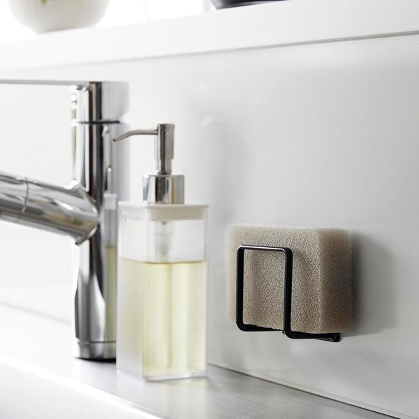 〇マグネットがつくスチール壁面に簡単取り付けできるスポンジホルダー。
