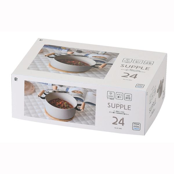 スプル ふっ素加工IH対応ガラス蓋付木柄深型両手鍋24cm