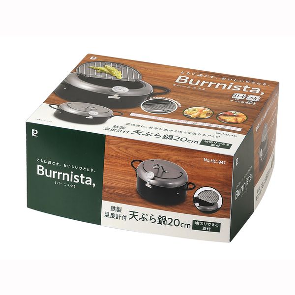 バーニスタ 鉄製温度計付天ぷら鍋20cm(油切りできる蓋付)