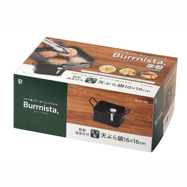 バーニスタ 鉄製温度計付正方型天ぷら鍋16×16cm