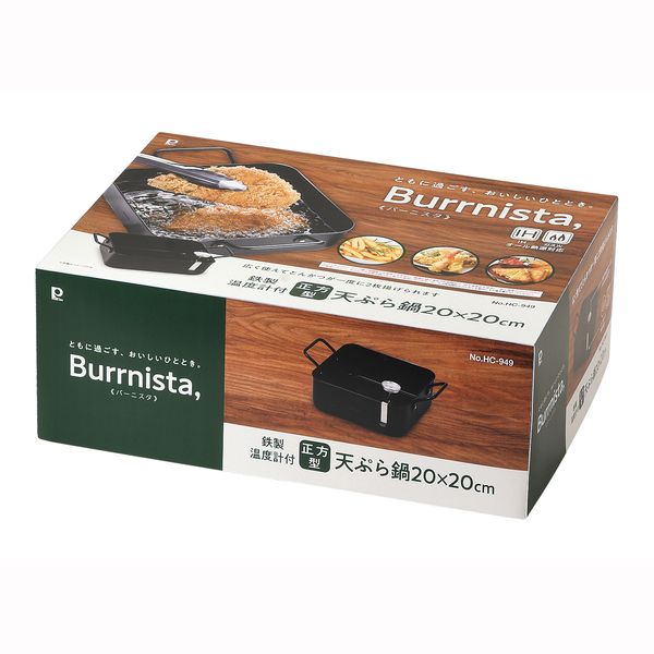 バーニスタ 鉄製温度計付正方型天ぷら鍋20×20cm(アミ付)