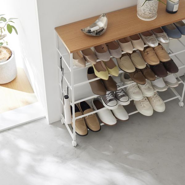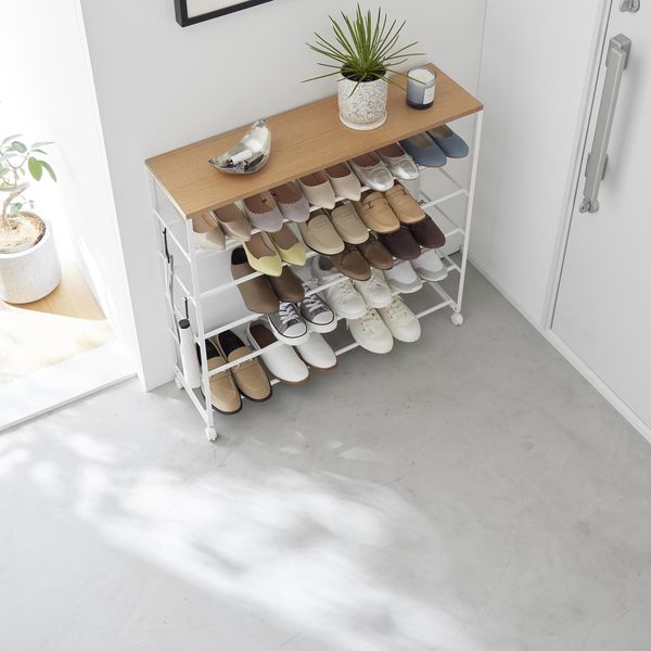 天板に小物が置けて便利! ワイドな5段シューズラック 掃除がラクなキャスター付き