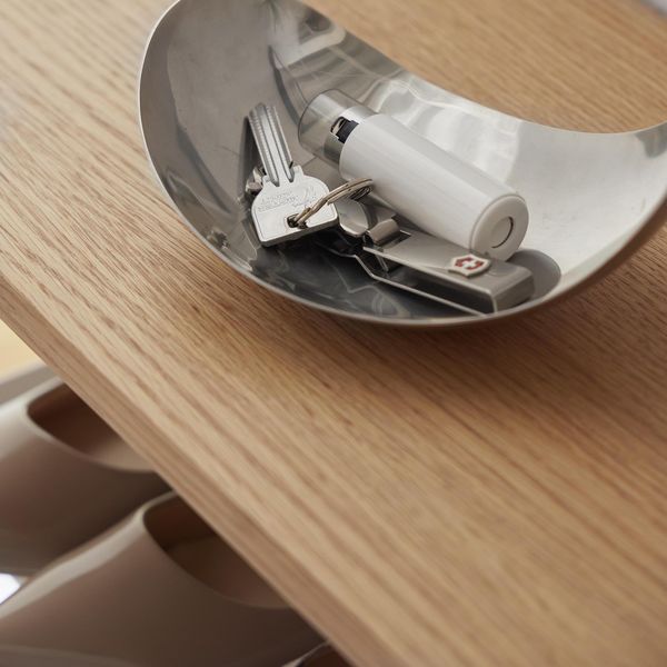 〇美しい天然木の天板は、鍵やハンコなどの小物を置く収納棚としてはもちろん、観葉植物やオブジェなどの飾り棚としても活用できます。