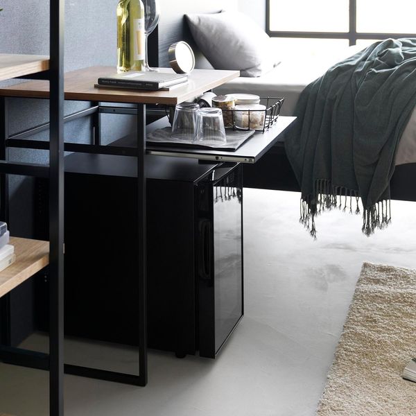 〇小型冷蔵庫や小型ワインセラー上に新たな収納場所をプラスし、空間を無駄なく活用できます。