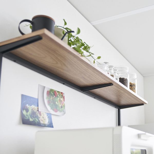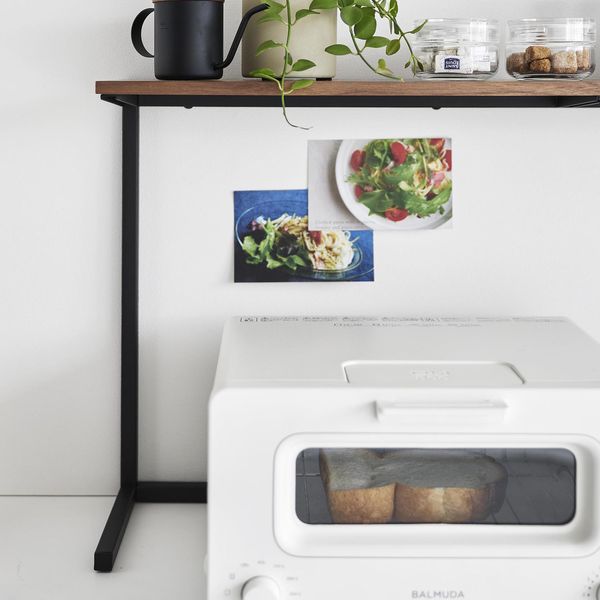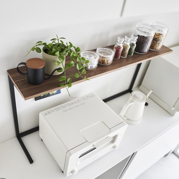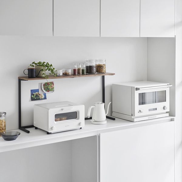 〇キッチン家電上の空きスペースを活用できるシンプルな形状の棚です。