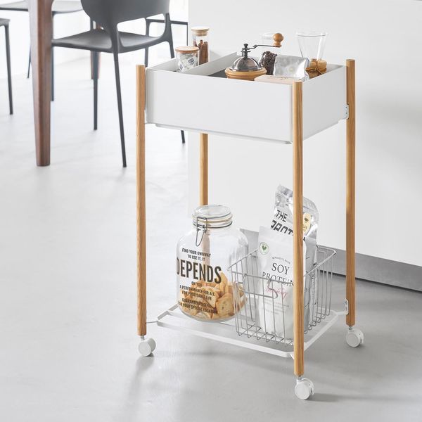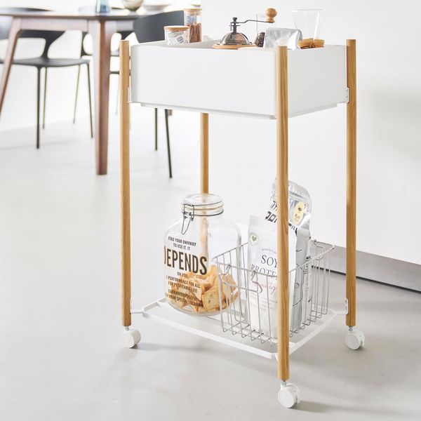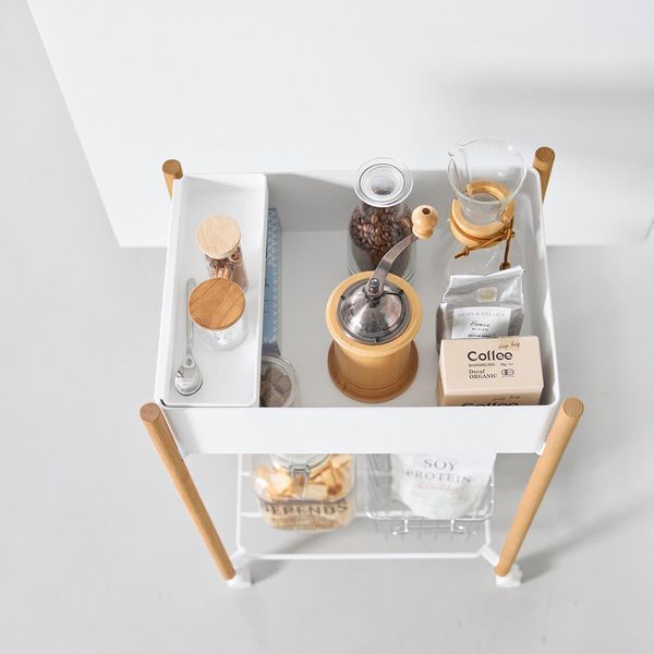 小物トレー付き下段が棚の収納ワゴン 2段 リン ナチュラル