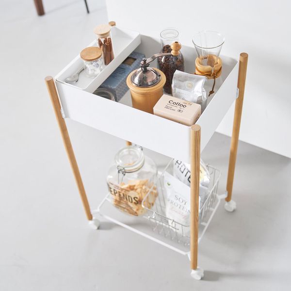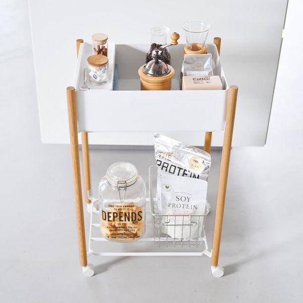 バスケットが取り外せる! 天然木がおしゃれな キャスター付き2段ワゴン !
