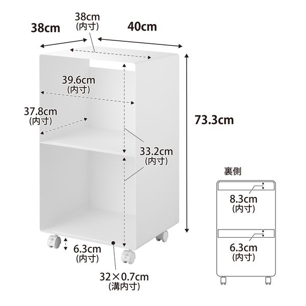 | サイズ | 商品サイズ:W40×D38×H73.3cm 内寸サイズ 天板:W38×D38cm 棚1段あたり:W39.6×D37.8XH33.2cm 商品重量:14200g 耐荷重 天板:5kg 棚1段あたり25kg (静止荷重) |