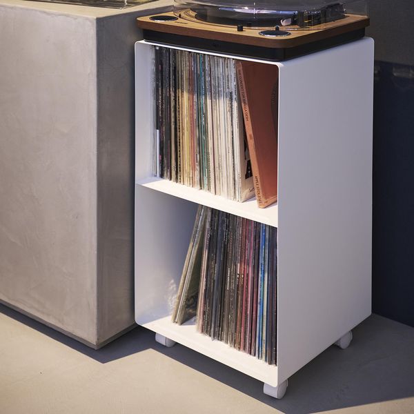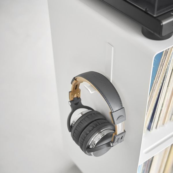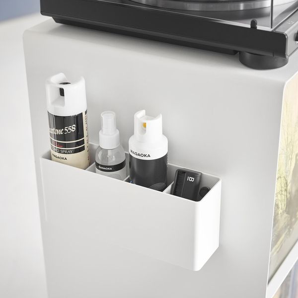 〇マグネットがくっつくスチール製なので、お手持ちのマグネット収納アイテムをラックの側面に取り付ければ、ヘッドフォンやレコードのお手入れグッズなどの収納にも活用できて便利です。