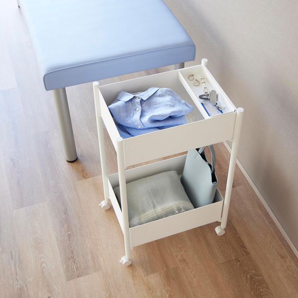 小物トレー付き収納ワゴン 2段 タワー ホワイト