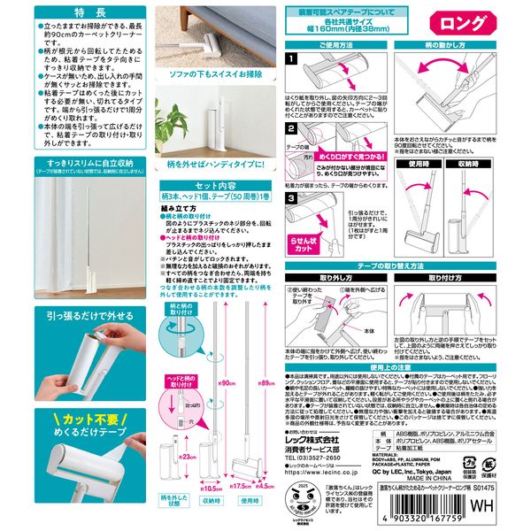 | 素材 | 柄:ABS樹脂・ポリプロピレン・アルミニウム合金 本体:ポリプロピレン・ABS樹脂・ポリアセタール テープ:粘着加工紙 |