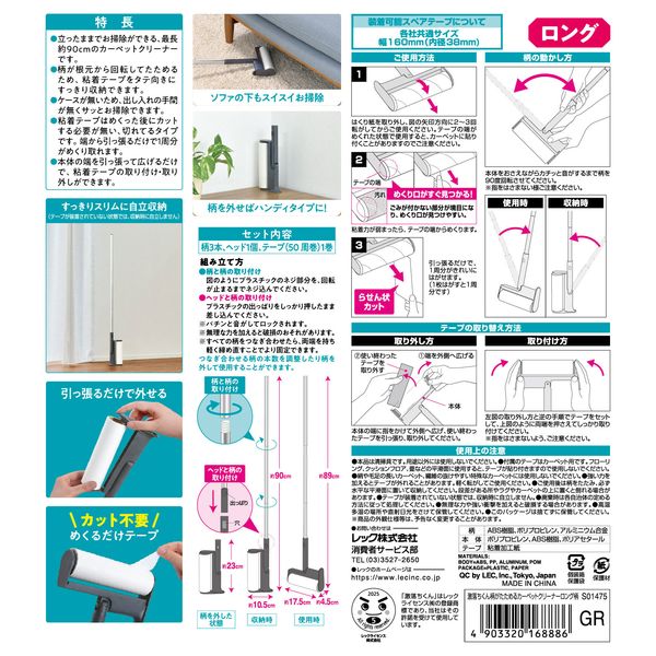 | 素材 | 柄:ABS樹脂・ポリプロピレン・アルミニウム合金 本体:ポリプロピレン・ABS樹脂・ポリアセタール テープ:粘着加工紙 |