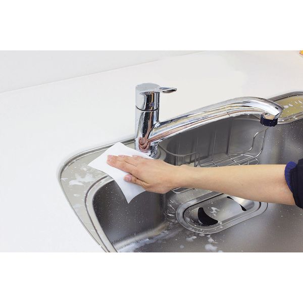 〇クエン酸パワーでシンクや洗面所まわりの水アカを分解して落とす、除菌率99.9%おそうじ用超厚ウェットシートです。