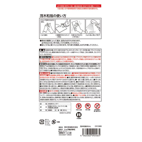 〇酸と研磨剤のハイブリッド洗浄で、ガンコな水垢を簡単に、安全に落とす弱酸性タイプのクレンザーです。