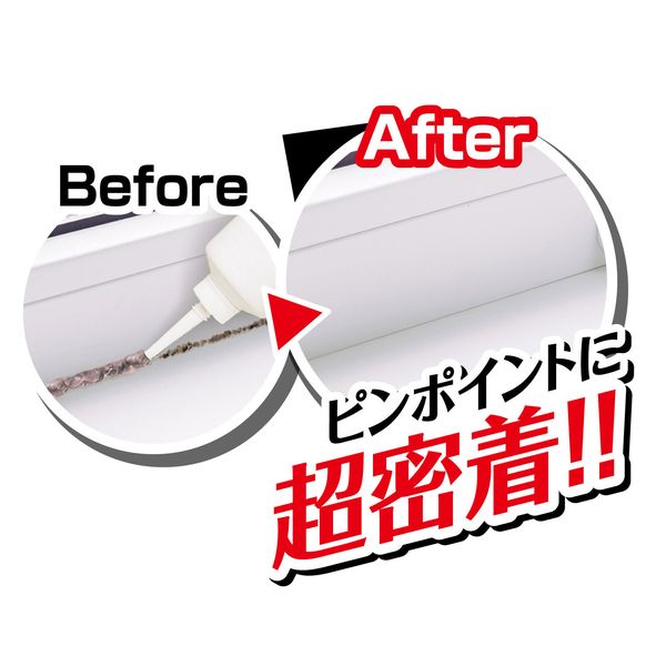 〇ゴムパッキンやタイル目地など細かい部位に塗布しやすいトンガリ先端形状です。
