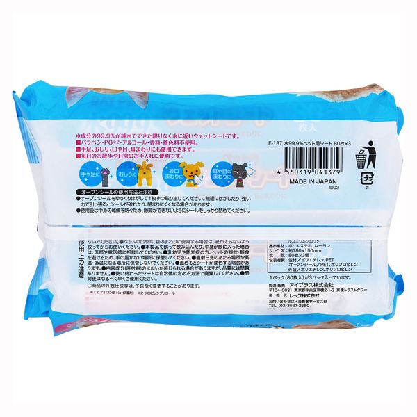 水99.9% ペット用 ウェットシート 80枚 3個入