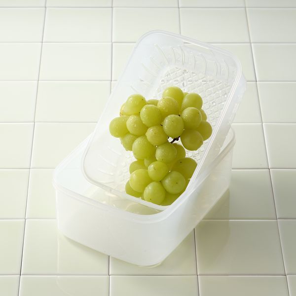 〇ザル付きなので、水切りに必要な食材に使用したり、逆に水を入れて水分を保ち鮮度を維持する保存ができる本体満水容量2.1Lの容器です。